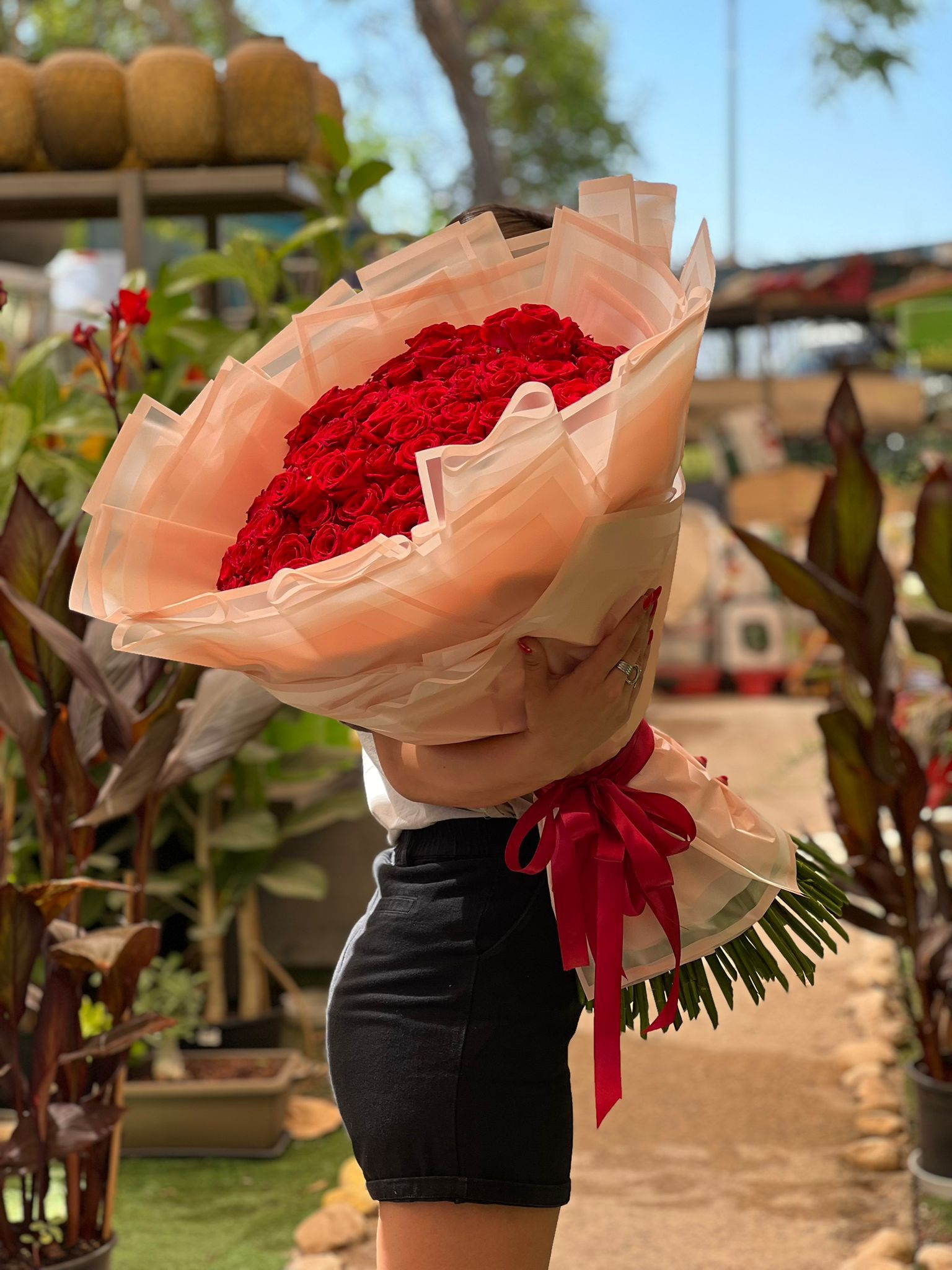 זר של 101 ורדים אדומים ענק ומטריף